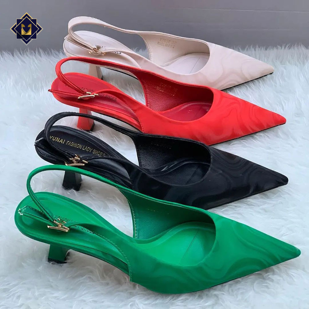 این کفش پاشنه بلند ۳ سانتی دارای تنوع رنگی سبز و مشکی و قرمز و کرم است.